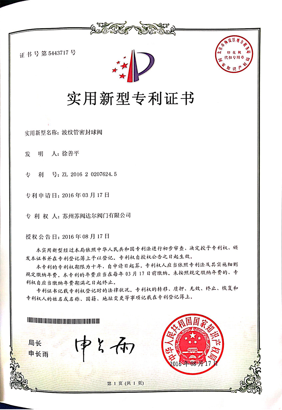波纹管密封球阀